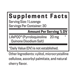 PQQ Lozenge contains 20 mg of Pyrroloquinoline Quinone Disodium Salt (PQQ), an antioxidant-like nutrient that supports healthy energy production and responses to oxidative stress.†